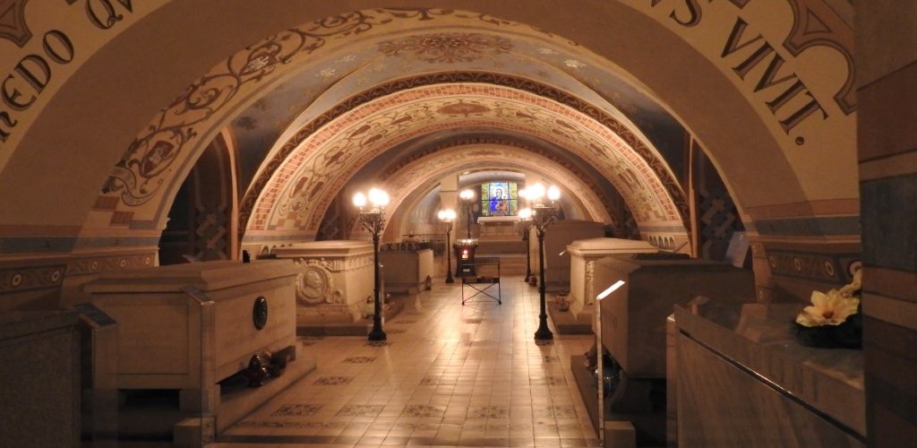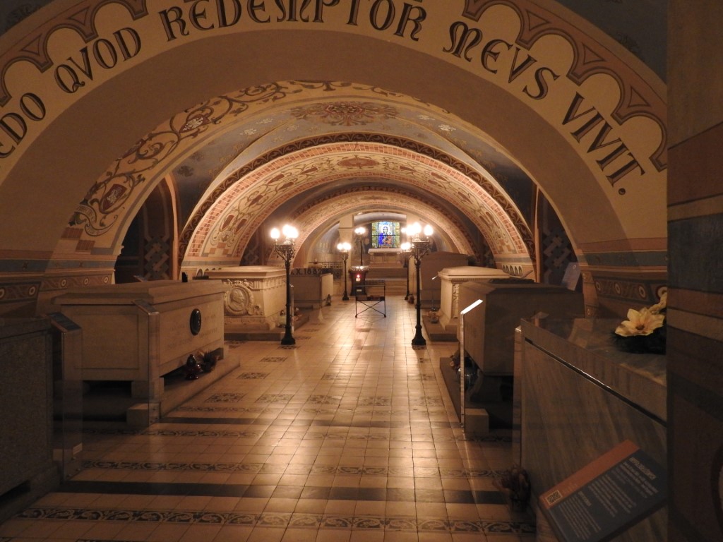 Znajdująca się pod kościołem jednonawowa krypta, częściowo wykuta w skale, ukończona została w 1792 roku. Przebudowana z myślą o pomieszczeniu Grobów Zasłużonych w latach 1876-1880, nakryta jest kolebkowym sklepieniem, z głębokimi niszami pod przęsłami naw bocznych.