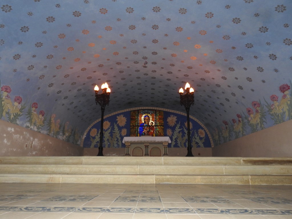 - Ołtarz neoromański: Znajduje się w prezbiterium krypty, które przykryte jest sklepieniem kolebkowym.