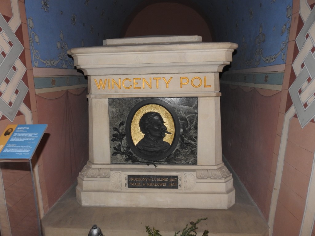 Wincenty Pol (1807–1872) – Poeta epoki romantyzmu, geograf i patriota. Uczestnik powstania listopadowego, autor popularnych pieśni patriotycznych i opisów krajobrazu polskiego. Jego pogrzeb w 1881 roku był pierwszym po otwarciu panteonu.